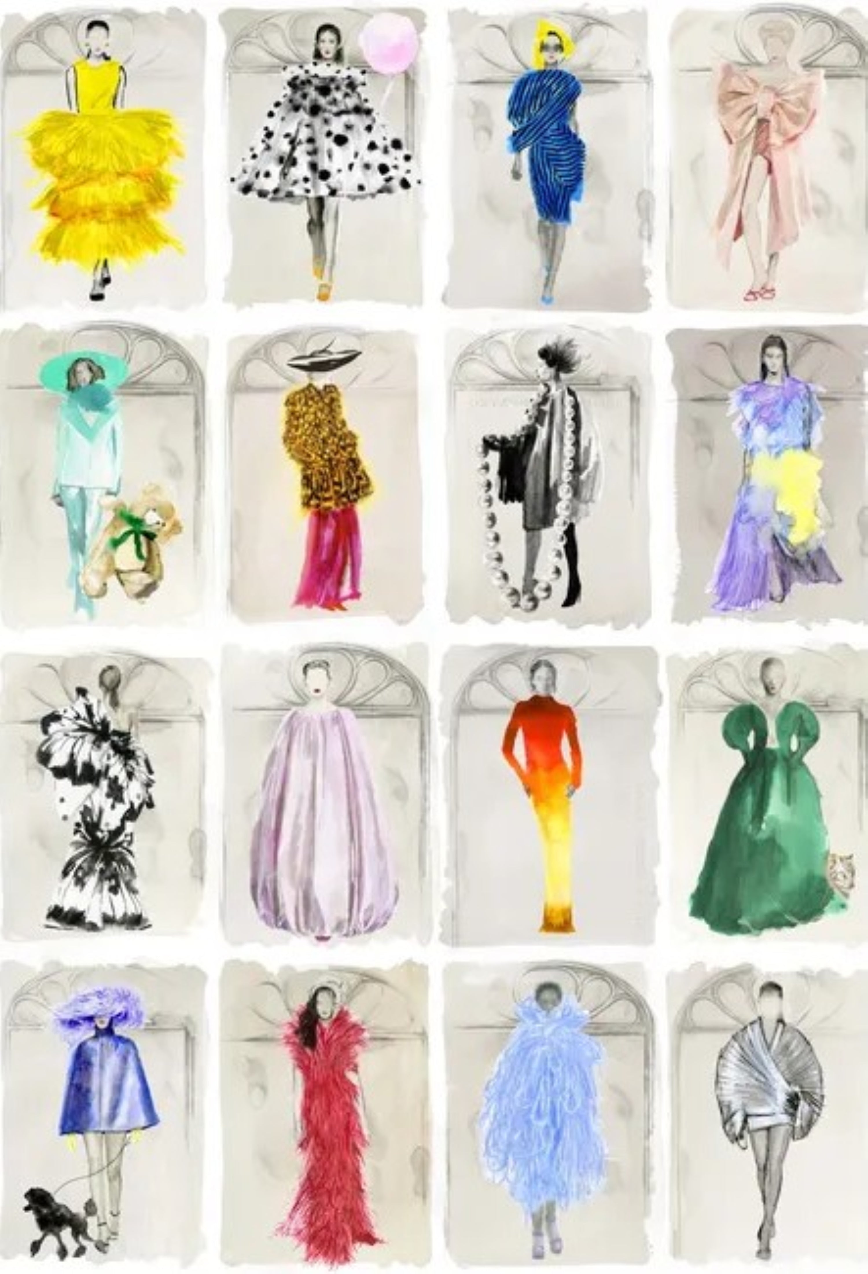 Mettant en scène les vitrines emblématiques de Harrods, l'imprimé Couture Carousel célèbre l'architecture inimitable du magasin. Conçue selon le principe « Omnia Omnibus Ubique » (« tout pour tous, partout »), la collection se décline en six coloris : des teintes vives et pastel multicolores, un lavande classique, un rose poudré doux, un monochrome minimaliste et un bleu Chine luxueux.
